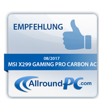 MSI liefert mit dem X299 Gaming Pro Carbon AC ein gut ausgestattetes und performantes Mainboard ab. Es befindet sich alles an Bord, was ein X299-Mainboard bieten sollte. Neben den zahlreichen Anschlüssen werden auch optische Extras wie die Mystic Light Be...